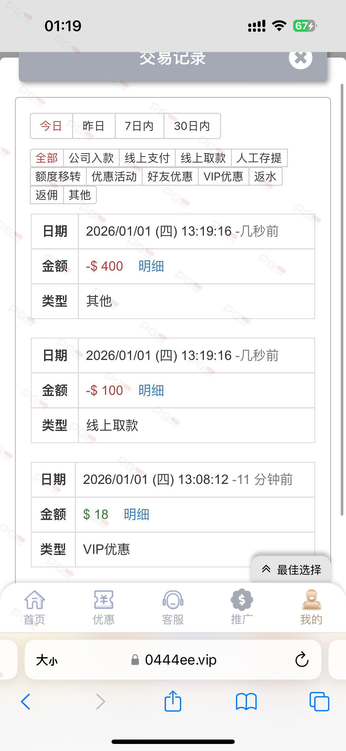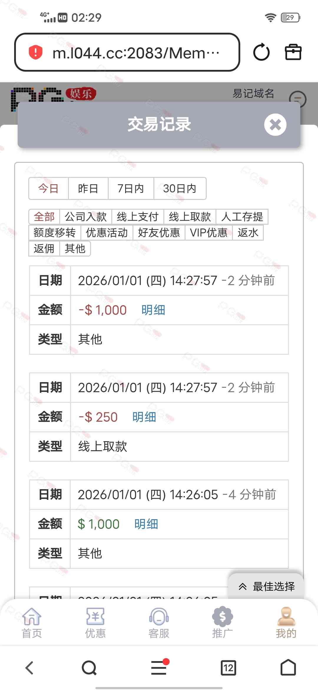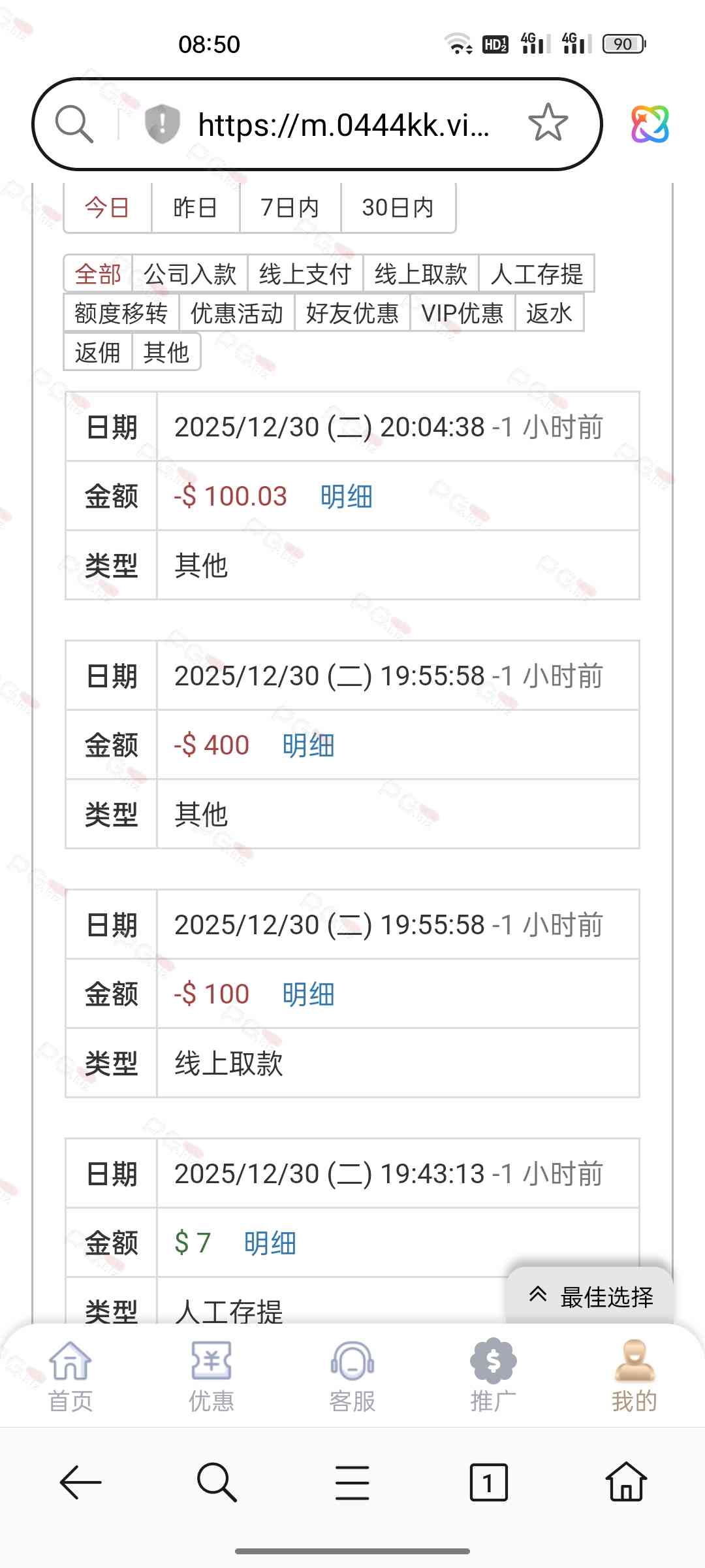 输了好几天终于回点血了。充九十提一千二