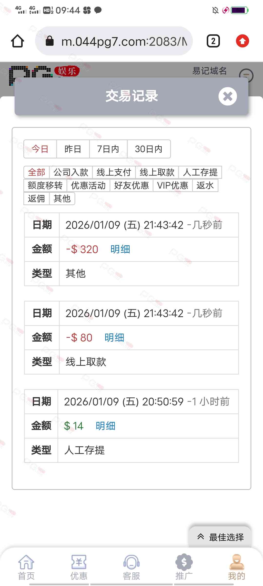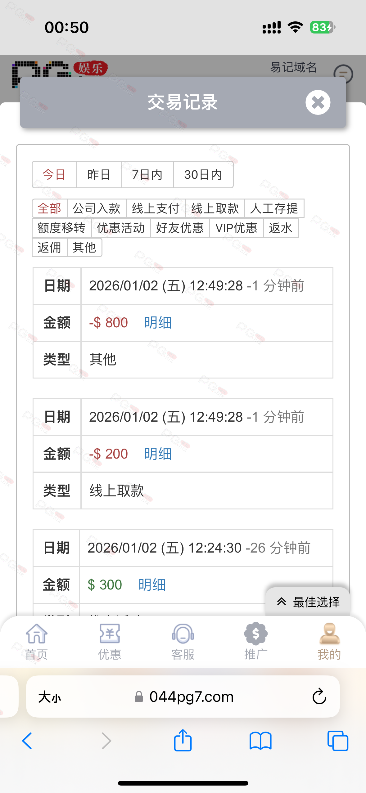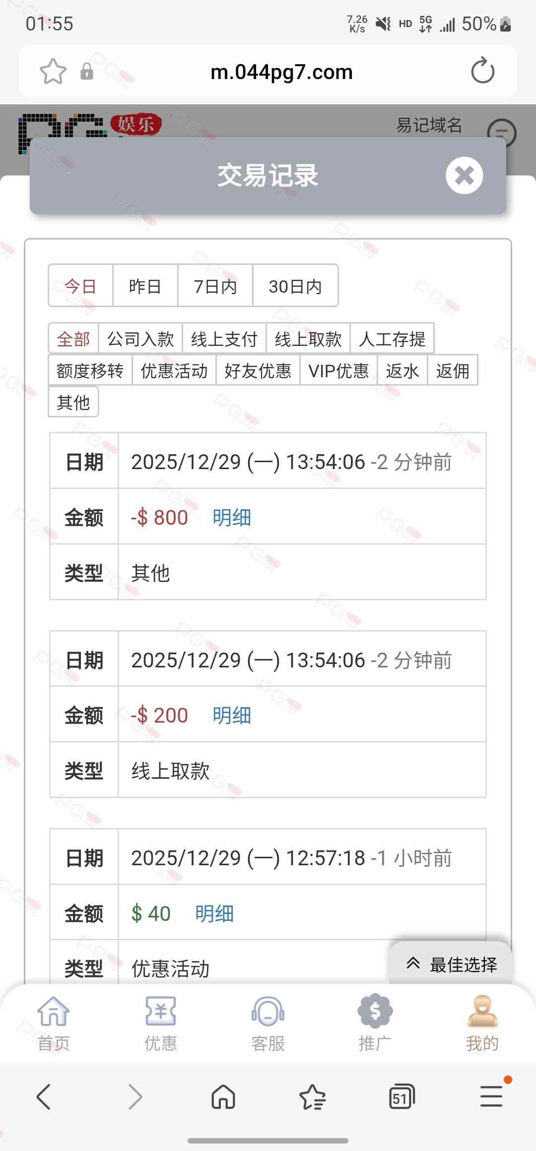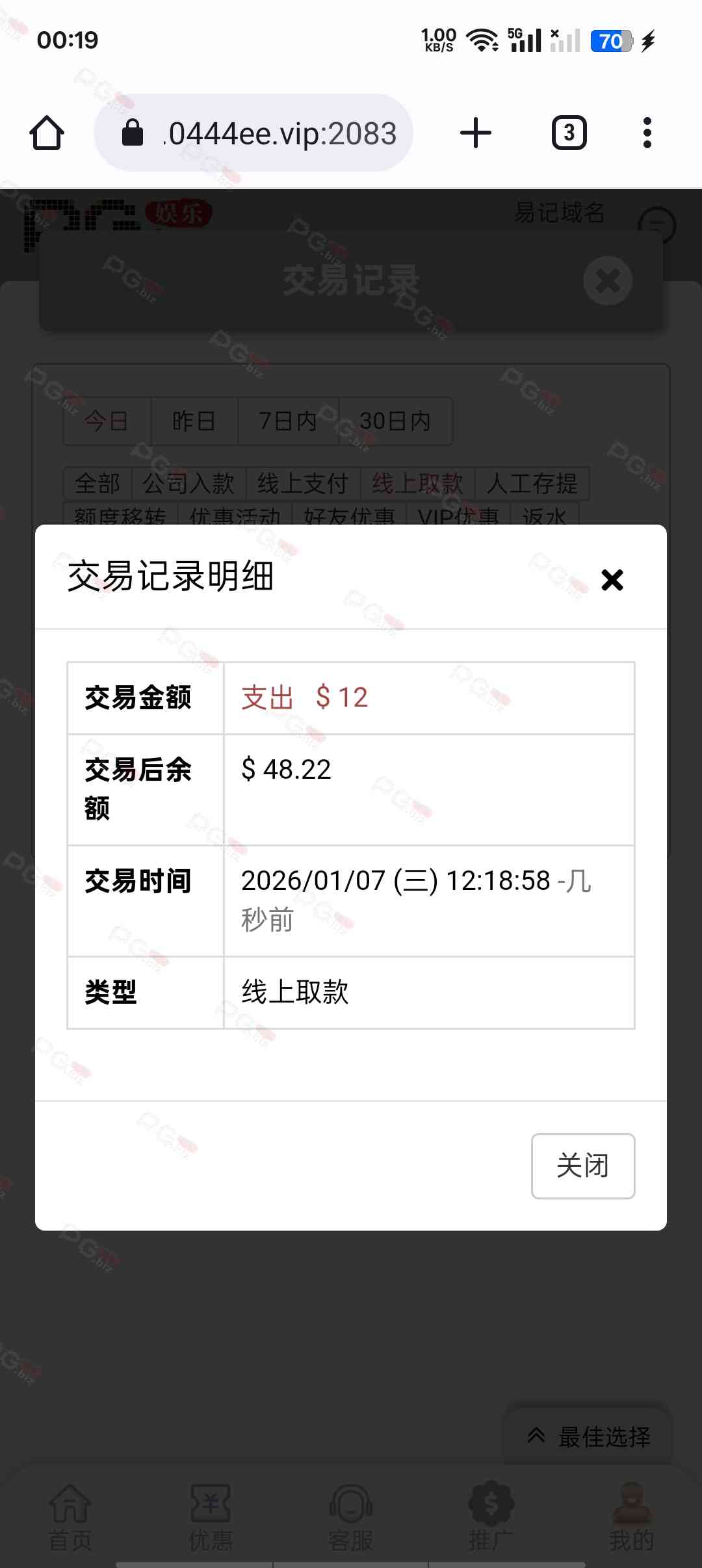 输了好几天终于回点血了。充九十提一千二