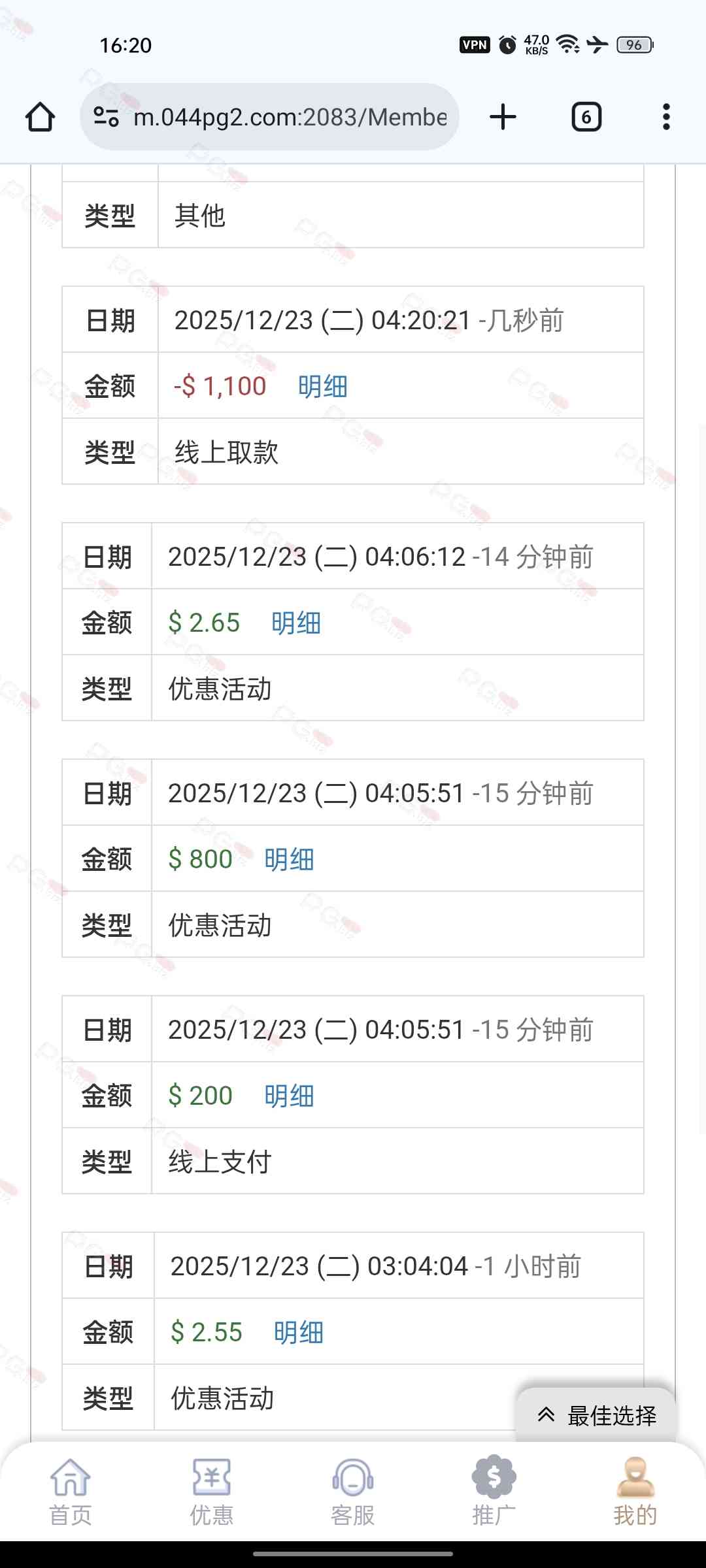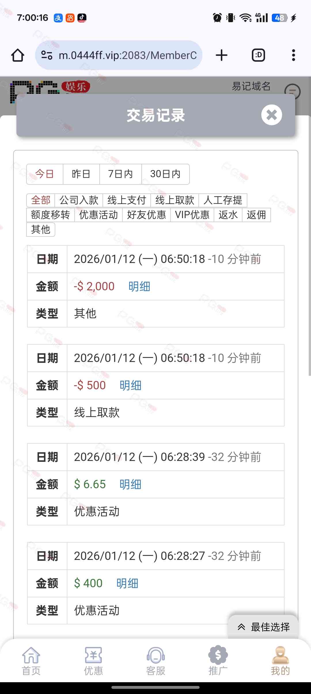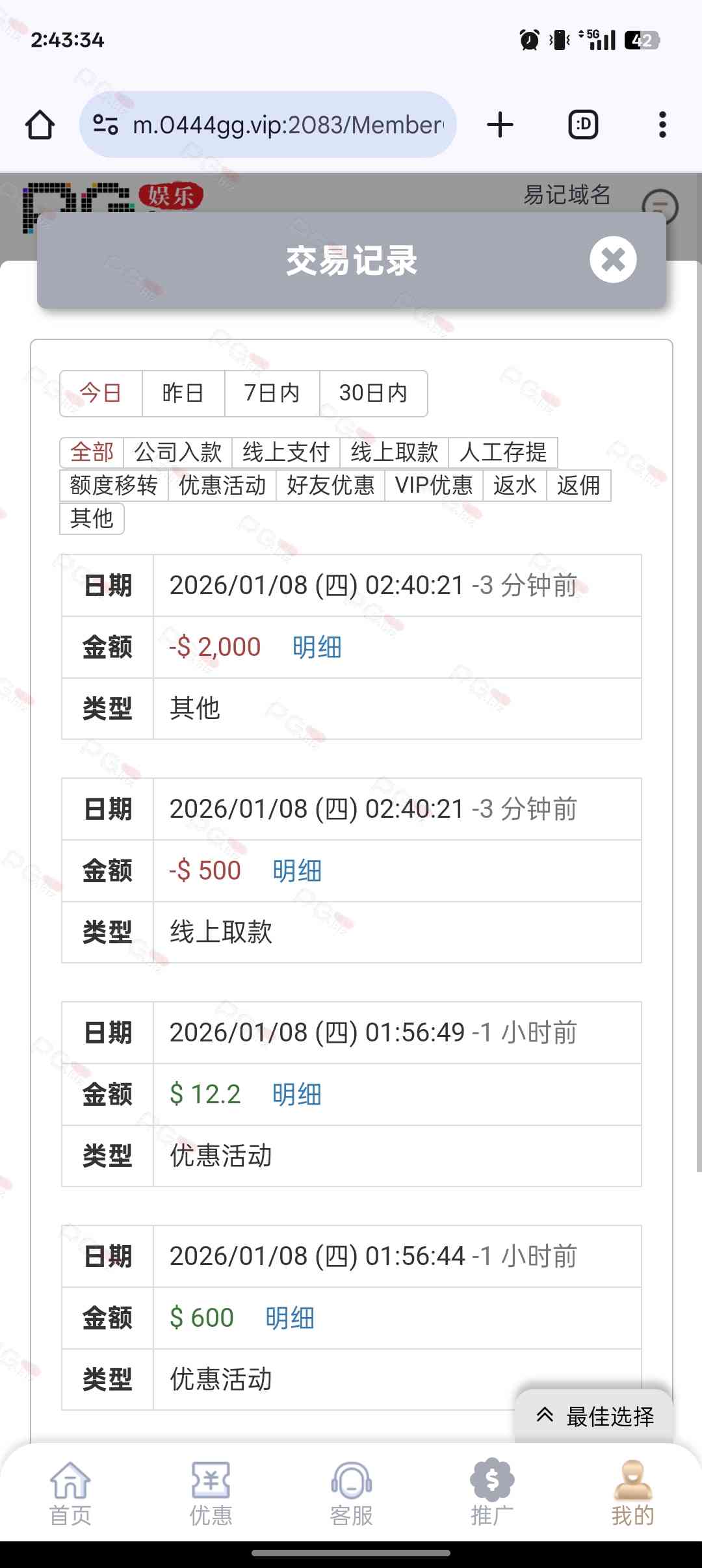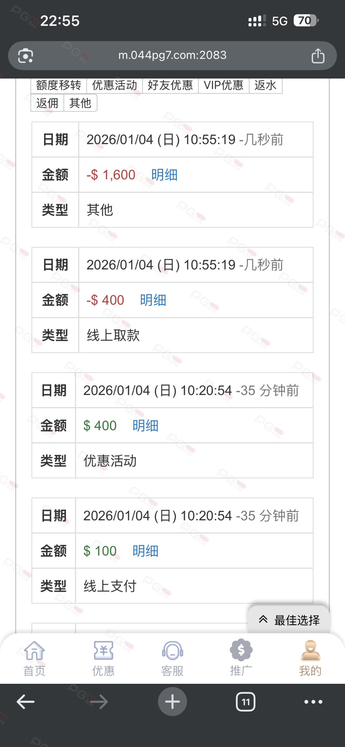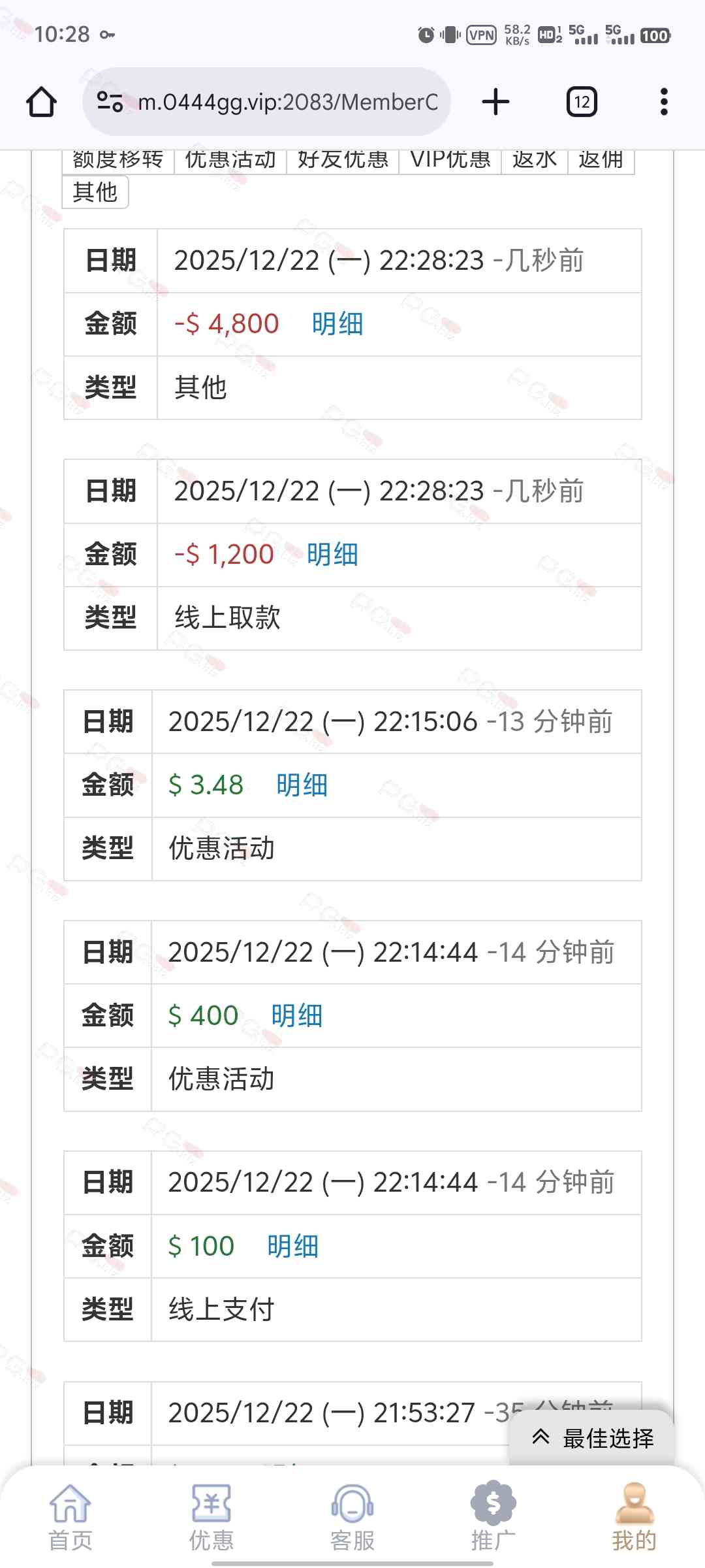之前小冲过,没打出来,签到几个月就打出来一次,还是1比10没限制的时候,这几天在别的台赢了些,想换个台玩,看见你们都是大水,就想来试试,还真是大水,是托死全家,!
