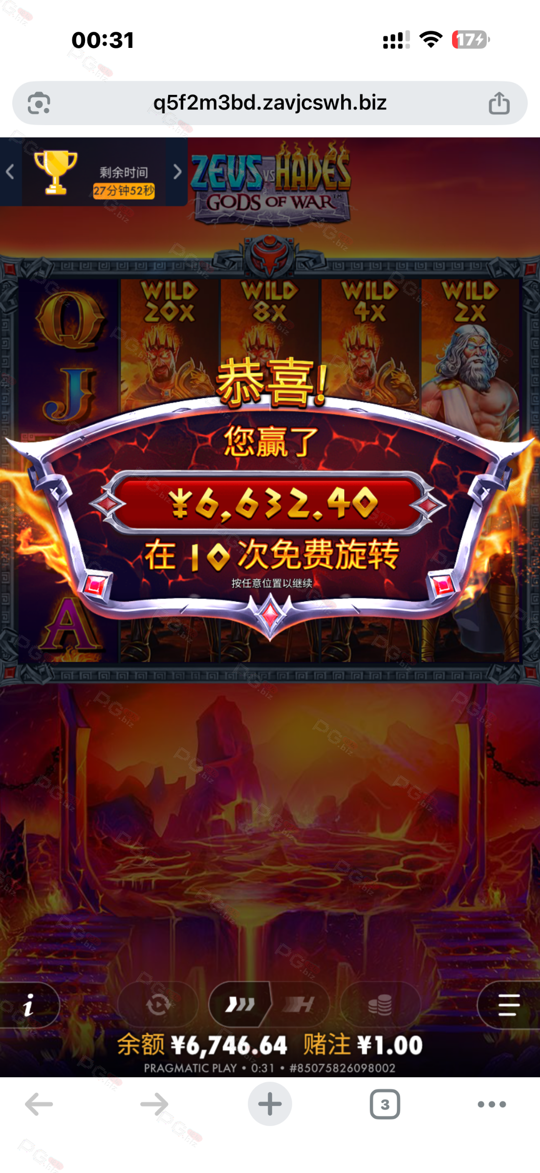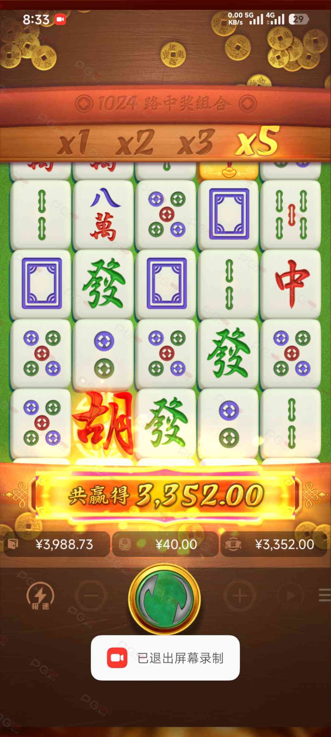 刚爆了6000多倍哈根斯,流水不够,跑去啦麻将,差点洗白,最后几下爆了,见好就收,谢谢