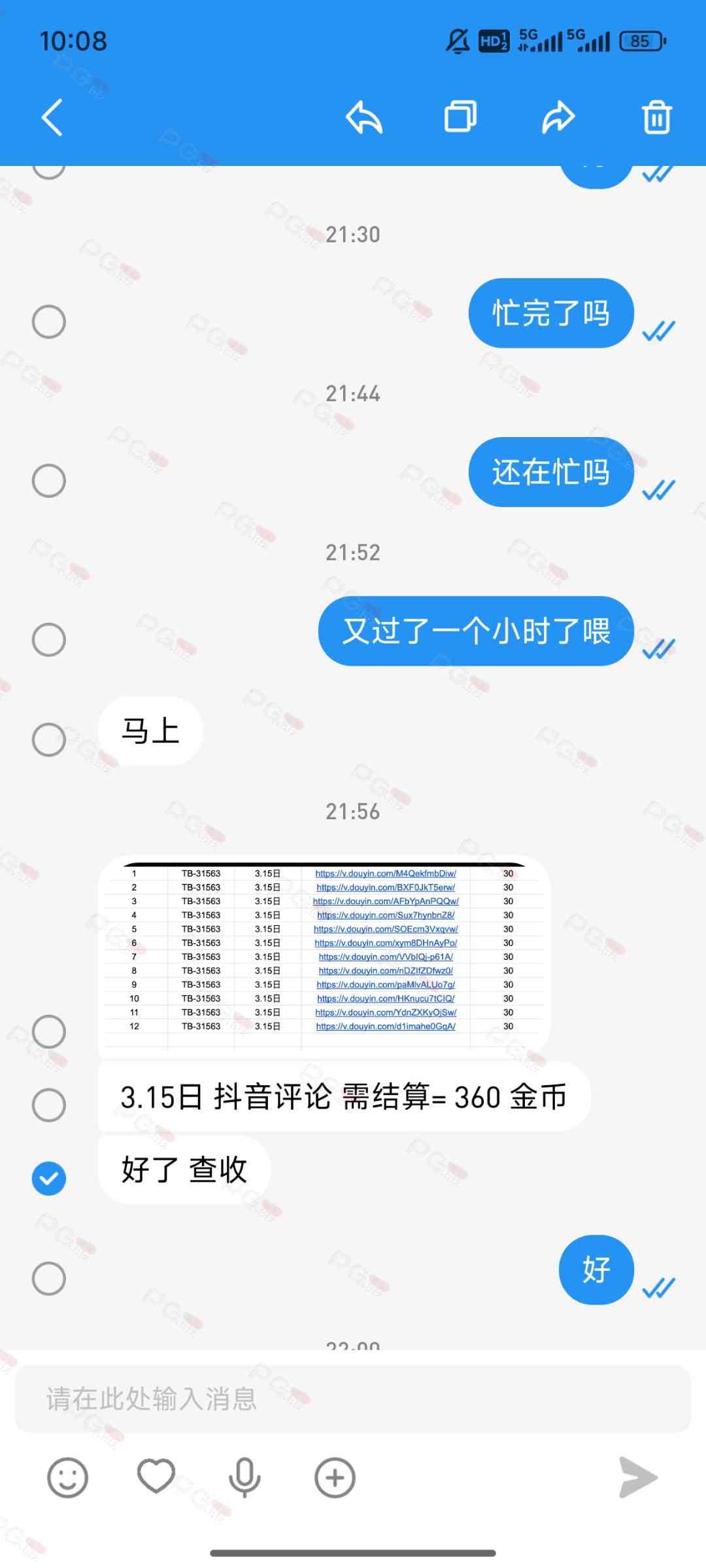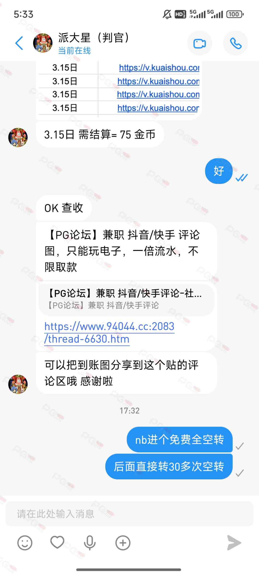 PG论坛兼职 抖音快手评论平时爱刷抖音快手的老哥们,可以在闲暇之余在关于博彩的视频下面帮PG论坛打个广告,发个有论坛链接的网址,只要该评论在该视频能留存三个小时以上,即可获得PG论坛的奖励。在指定的快手视频下留言,一个有效评论为15金币在指定的抖音视频下留言,一个有效评论为30金币