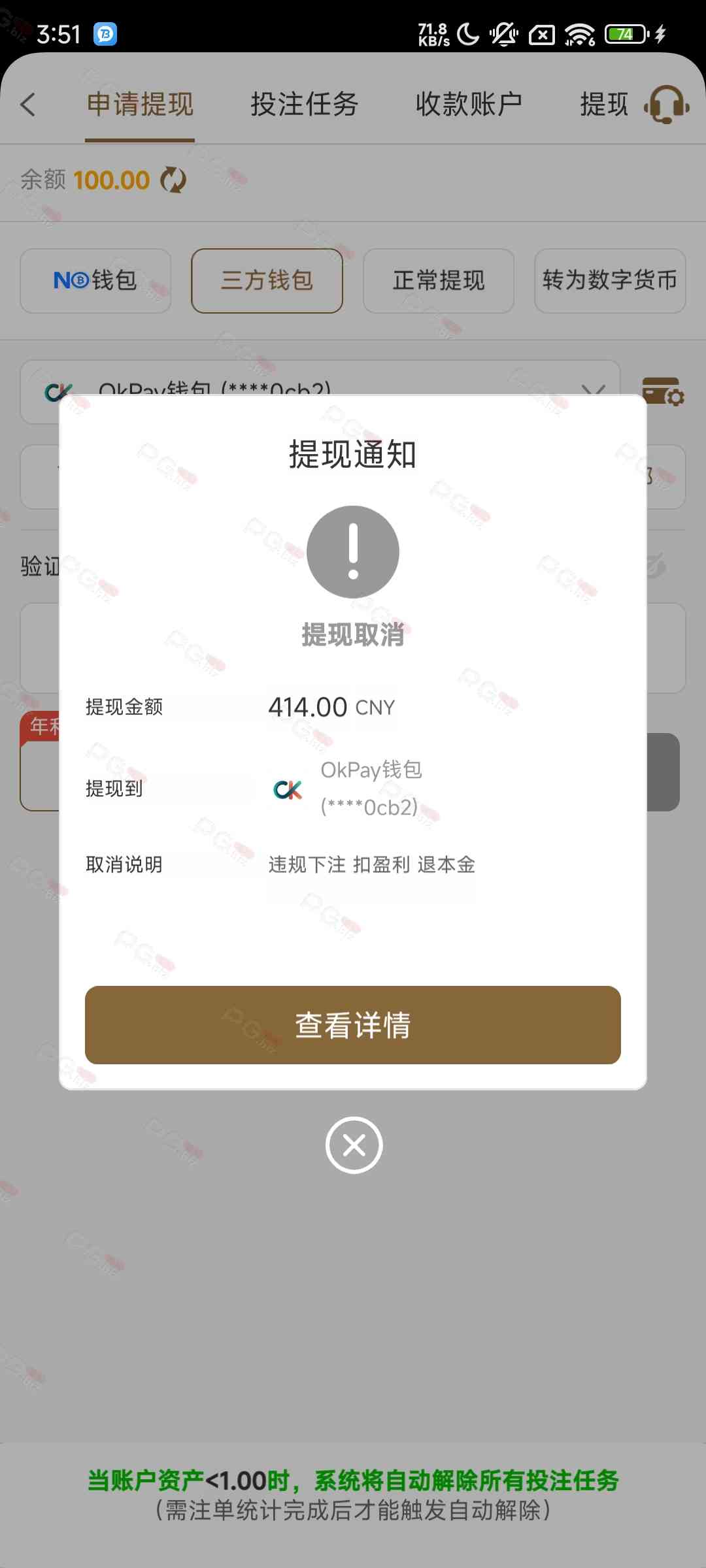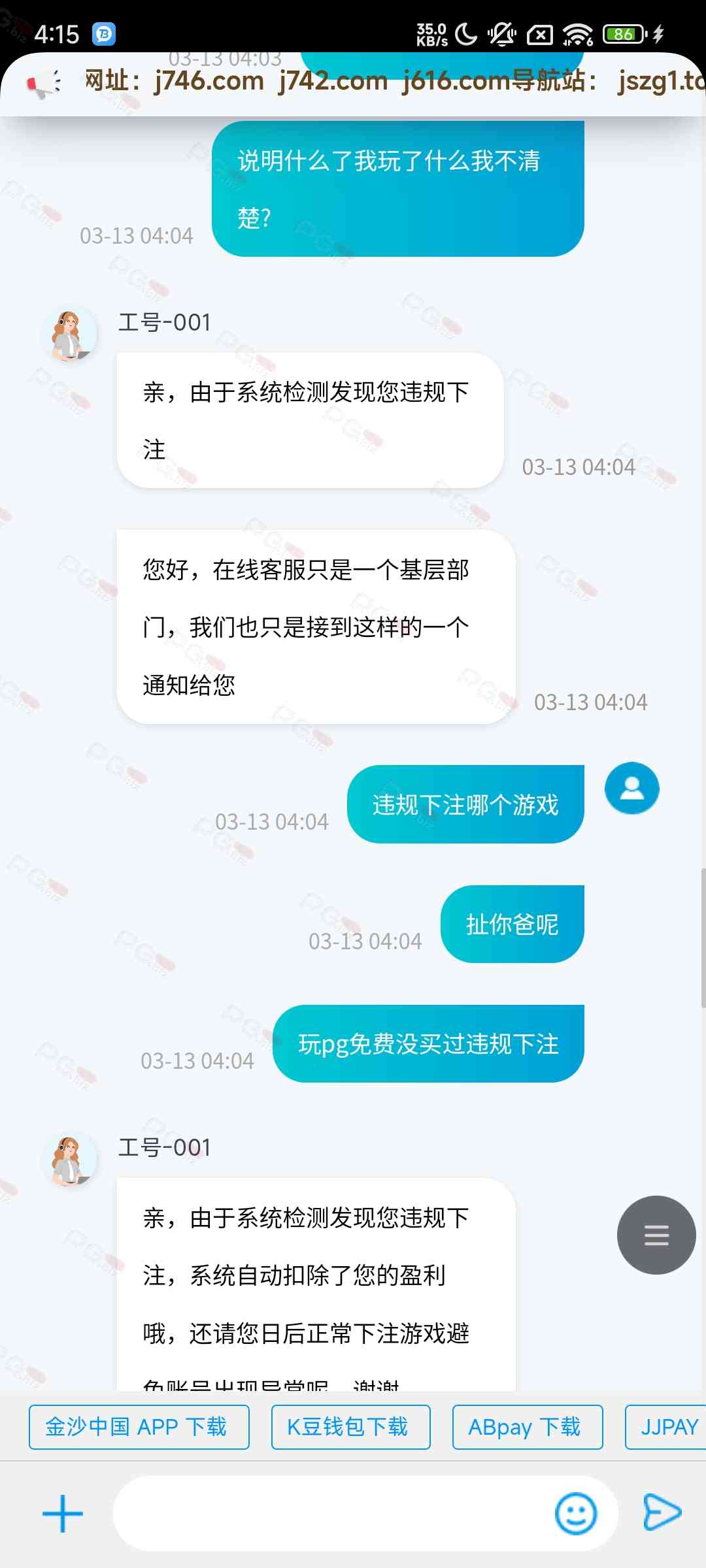 金沙中国大黑台,大家小额都建议不要参加了,之前小额赢点还能提,可能跟澳门上葡京一个老板,还有个博牛,建议一毛钱别存了,随时黑,之前看大额也黑现在,小额也黑了,参加了百分百只打了pg的一个游戏没买免费明黑,第一笔裸打的捕鱼,第二笔就玩了pg一个电子