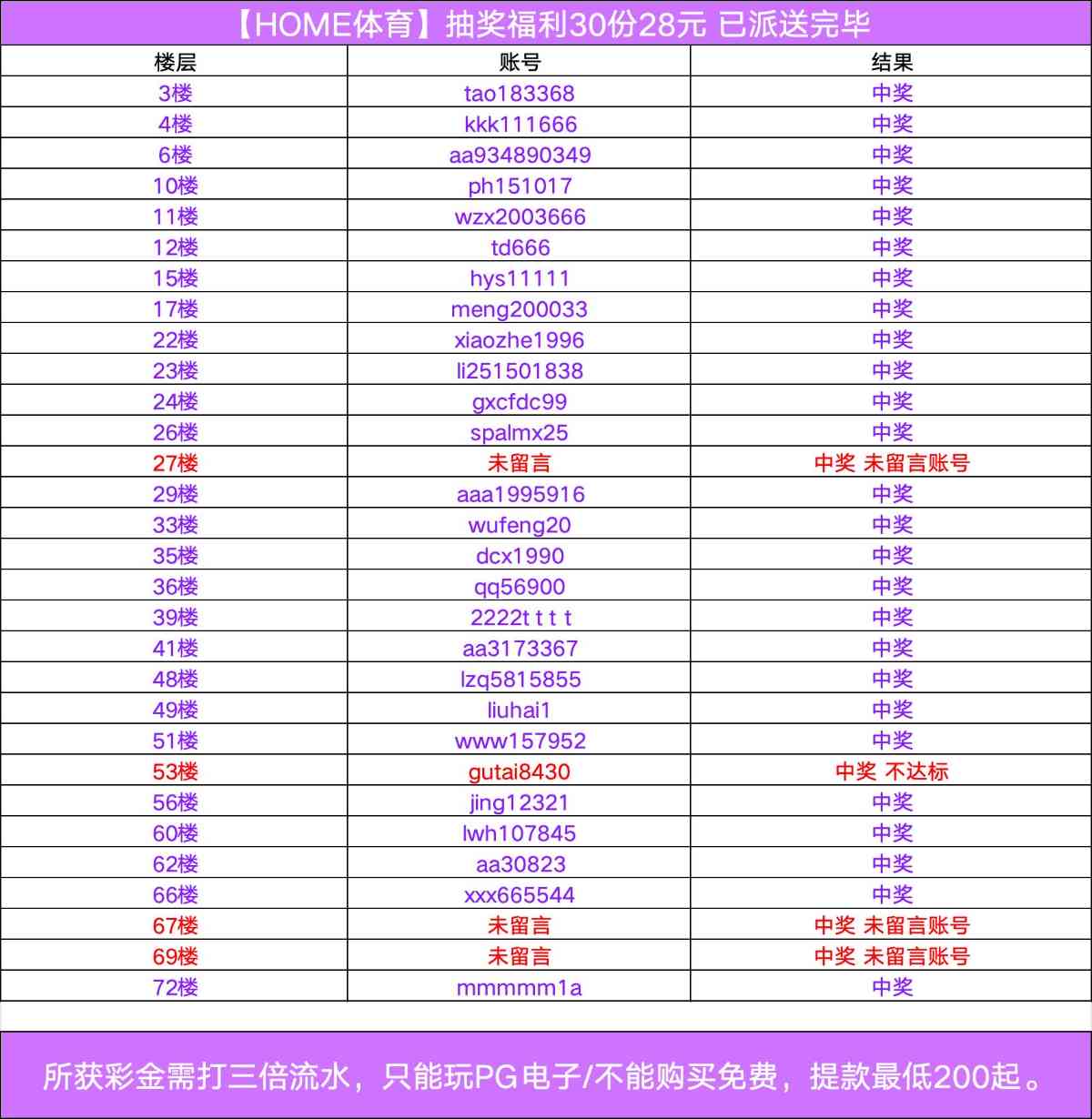 需要绑定银行卡提款方式,并且必须从论坛链接注册 否则中奖无效