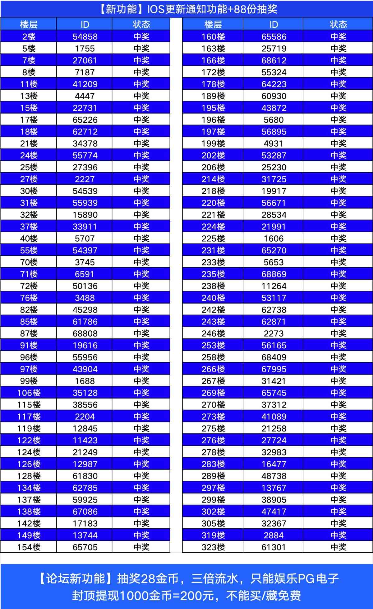 另外安排一波抽奖88份28评论区留言你的论坛UID即可抽中的需打三倍流水,只能娱乐PG电子封顶提现1000金币=200元不能买/藏免费晚上11点半开奖
