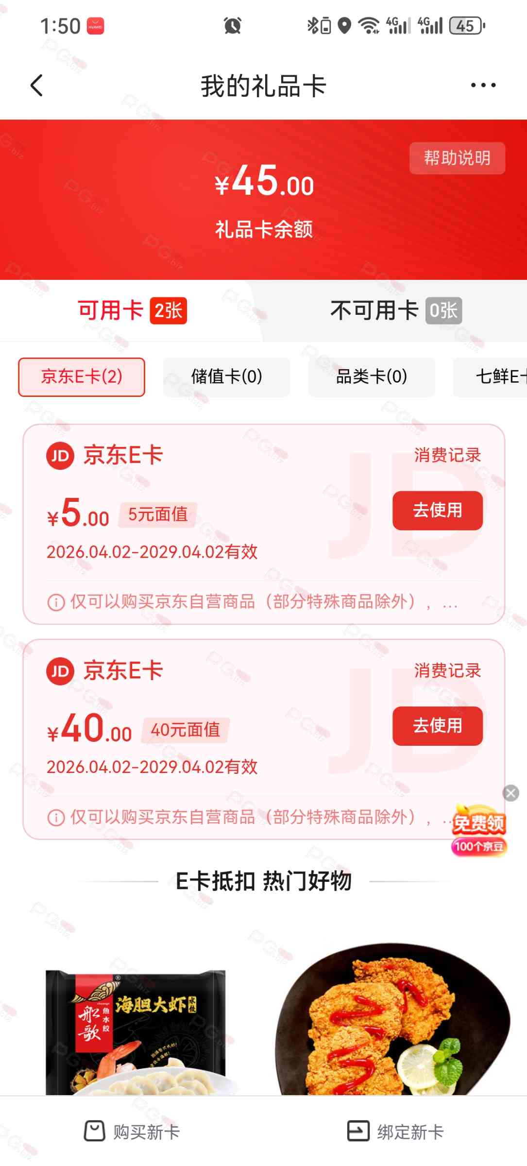 第一步微信小程序搜索浦惠来了进去登入绑定工号不用填,绑定企业就是一键刷脸就行,完事送到个人京东号里面!40e卡,然后小程序进添加企业微信,领5e卡,完事删除就行,无风险无安全隐患,45上分输完了