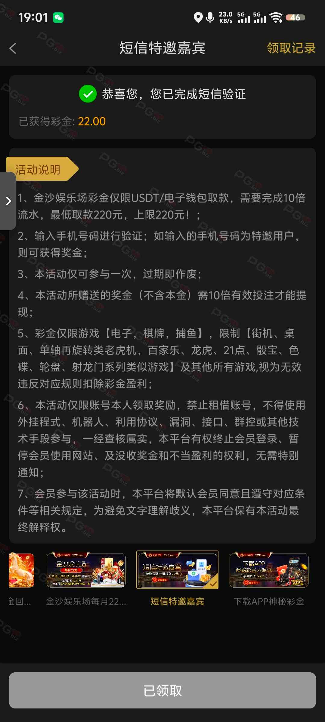 撸成功的老哥,请跟客服说您是从PG论坛 【PG.Biz】过来的。