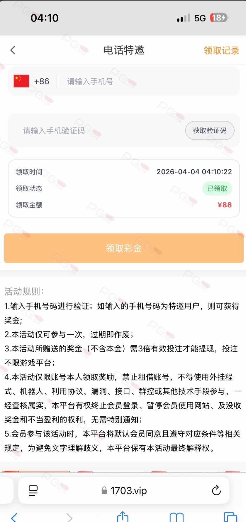 这台子真牛批,我明明是特邀,鸡扒不让我领取,还说什么注册24小时内才能领取,超过24小时就不让领取了