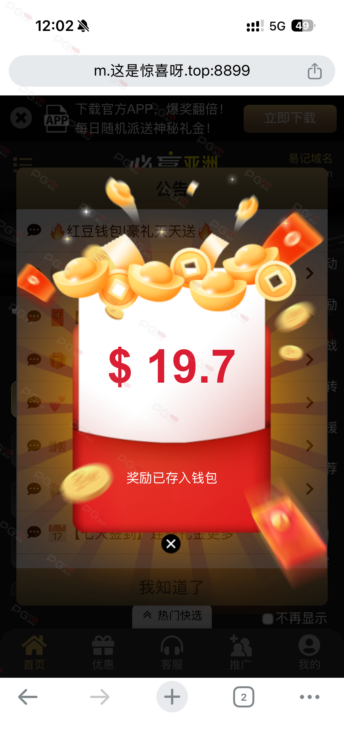 撸成功的老哥,请跟客服说您是从PG论坛 【PG.Biz】过来的。
