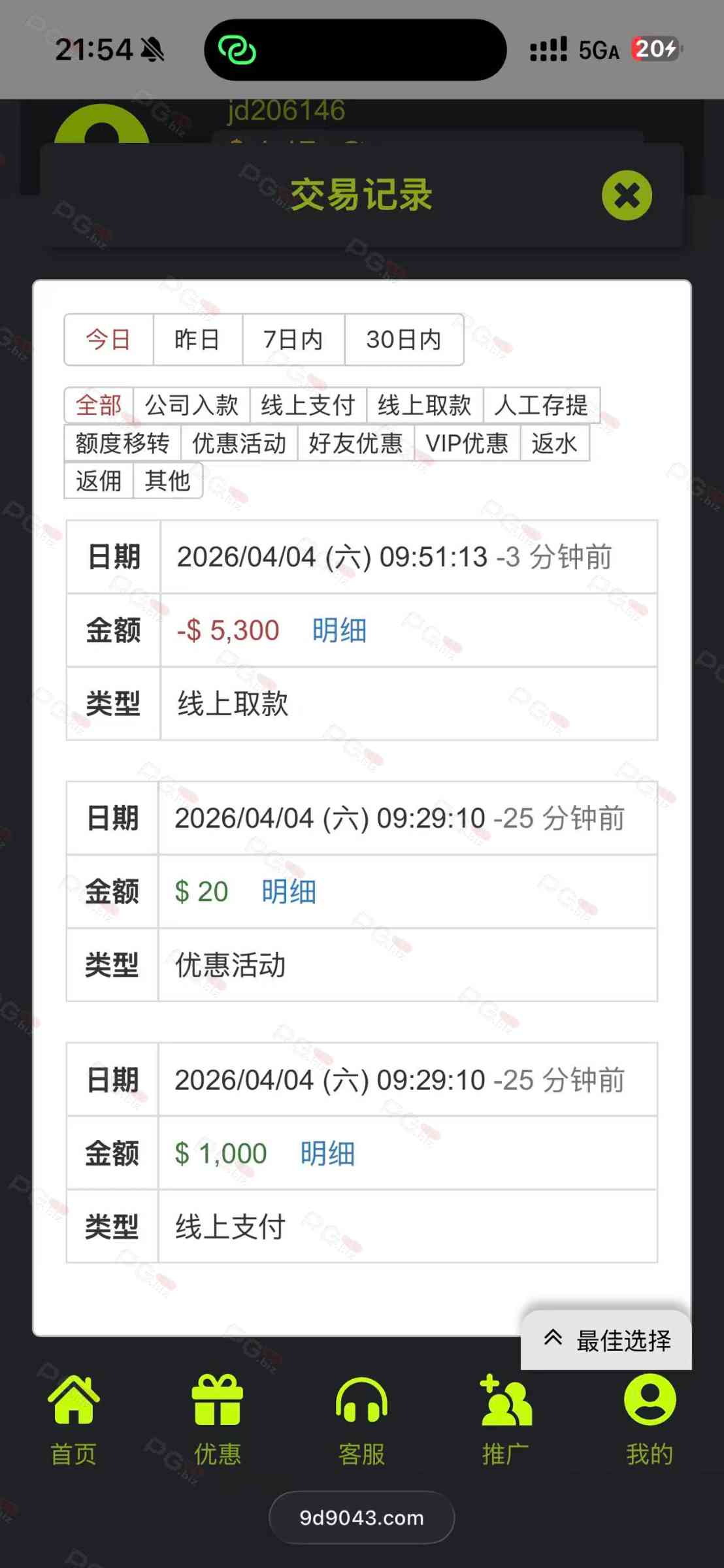 对于我来说 回血就已经算赢了 澳门银河3016 300的吃8500 九鼎国际1000得吃5300 上个月在别的地方输了一整个月 也把苹果手机买回来了 还得是论坛担保的平台啊 谁说我是托 谁就是