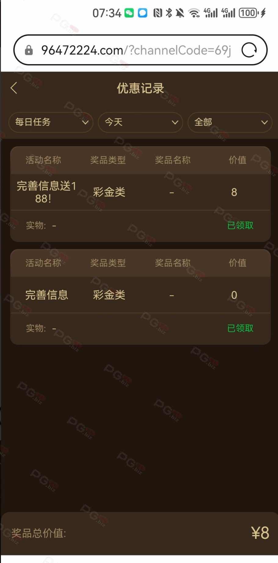 优惠每日任务里面完善信息送8,黑不黑自测,8块挂了